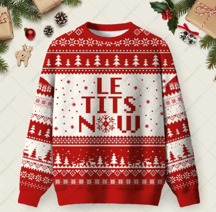 From reindeers with flashing noses to Santa memes, these sweaters are all about joy and humor. And if you want to go a step further, try Ugly Christmas Knit Sweatershirts. They blend the coziness of a sweater with the lightness of a sweatshirt — perfect for any festive gathering.